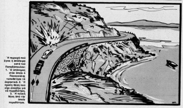 «Είχα διαπιστώσει ότι την ώρα που το αυτοκίνητο του Παπαδόπουλου έκρυβε από μένα την πινακίδα, ήταν ακριβώς πάνω στο σημείο που είχα τοποθετήσει τις νάρκες.Αυτό, ήταν ένα σημείο, που με διευκόλυνε, ώστε να μην γίνη σφάλμα».