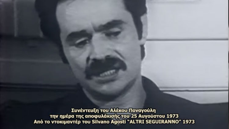 Συνέντευξη του αντιστασιακού Αλέκου Παναγούλη την ημέρα της αποφυλάκισής του 25 Αυγούστου 1973: Αφηγείται τα γεγονότα που ακολούθησαν μετά τη σύλληψη του, δίνοντας λεπτομέρειες για τη διαδικασία της ανάκρισης, τα βασανιστήρια που υπέστη και τις μεθόδους βασανισμού που χρησιμοποιούσε η χούντα. Από το ντοκιμαντέρ του Silvano Agosti “Altri Seguiranno” 1973.