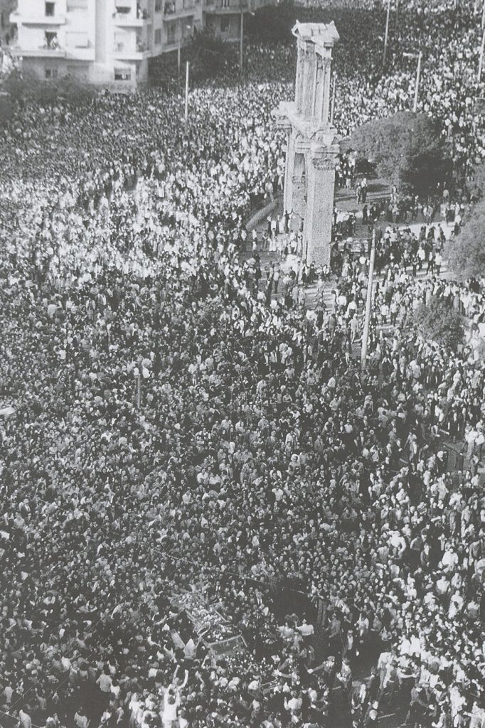 Eνα τεράστιο πλήθος εκατοντάδων χιλιάδων πολιτών ακολουθεί το φέρετρο του Αλέκου Παναγούλη προς το Α΄ Νεκροταφείο. Η απόπειρα δολοφονίας του δικτάτορα Γ. Παπαδόπουλου, τα βασανιστήρια που υπέστη ο Παναγούλης και η δίκη που ακολούθησε τον κατέστησαν σύμβολο του αντιδικτατορικού αγώνα.