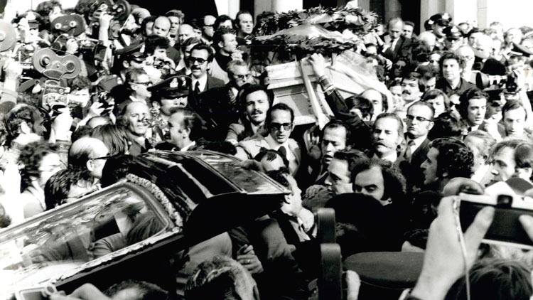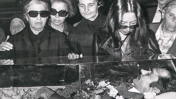 Η μητέρα του Αθηνά και η σύντροφός του Οριάνα Φαλάτσι στην κηδεία του στις 5 Μαΐου του 1976.