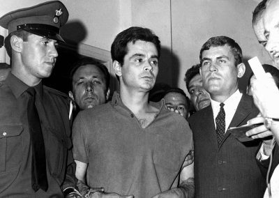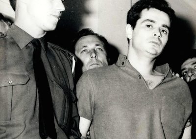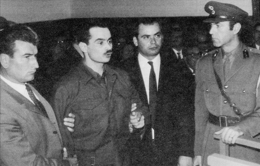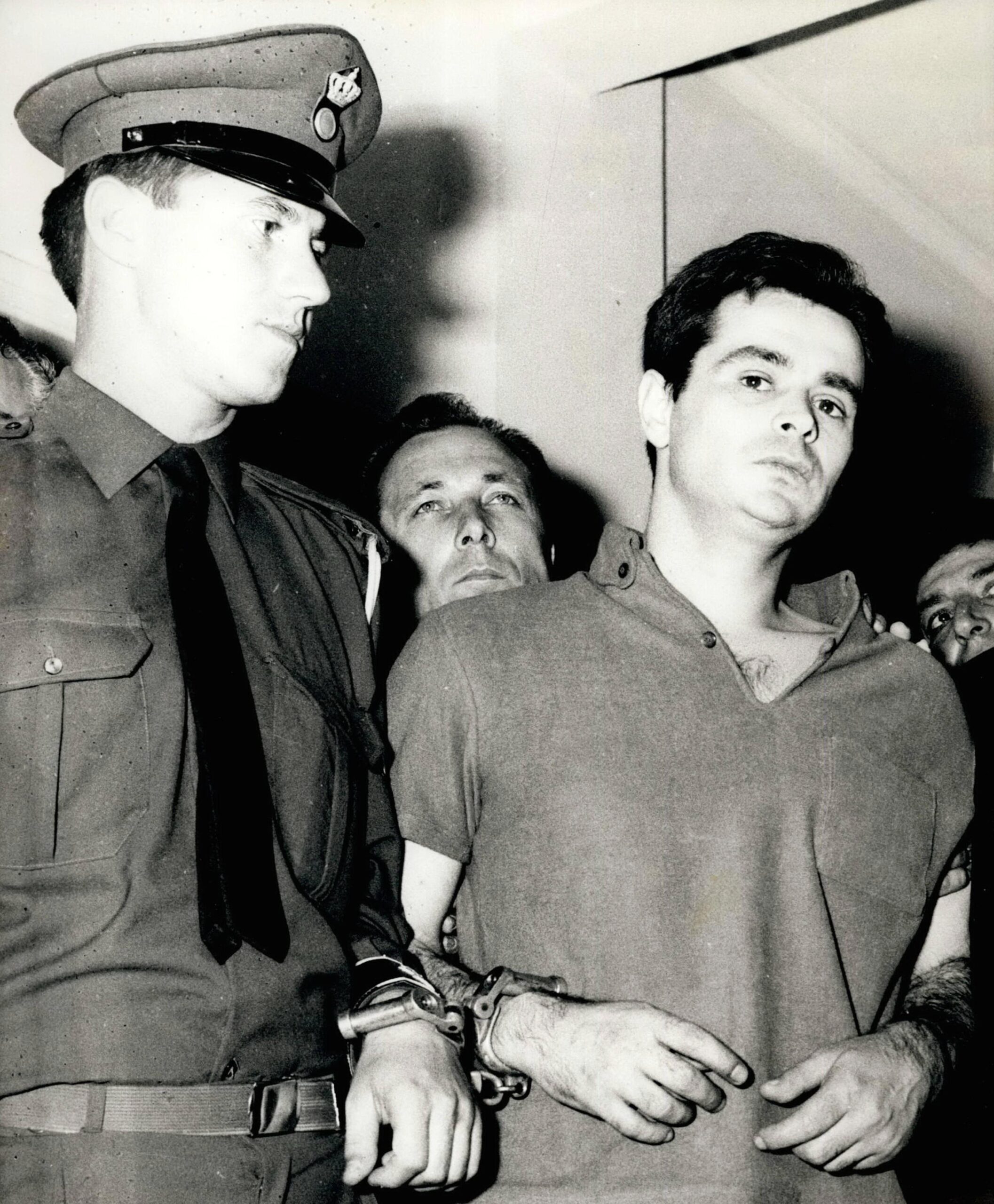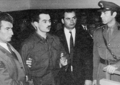 Ο Αλέκος Παναγούλης ενώ οδηγείται με χειροπέδες στην αίθουσα του Έκτακτου Στρατοδικείου Αθηνών για να δικαστεί για την απόπειρα δολοφονίας του δικτάτορα Γ. Παπαδόπουλου (Νοέμβριος 1968). Keystone Press Agency/ALAMY/VISUALHELLAS.GR