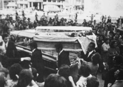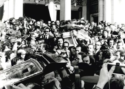 Ο Αλέκος Παναγούλης οδεύει προς την τελευταία του κατοικία στο Α΄ Νεκροταφείο. Μπροστά, το φέρετρο κρατάει ο αδελφός του Στάθης Παναγούλης. Η κηδεία εξελίχθηκε σε τεράστια διαδήλωση υπέρ της δημοκρατίας, καθώς η εντύπωση της δολοφονίας ήταν διάχυτη στον κόσμο.