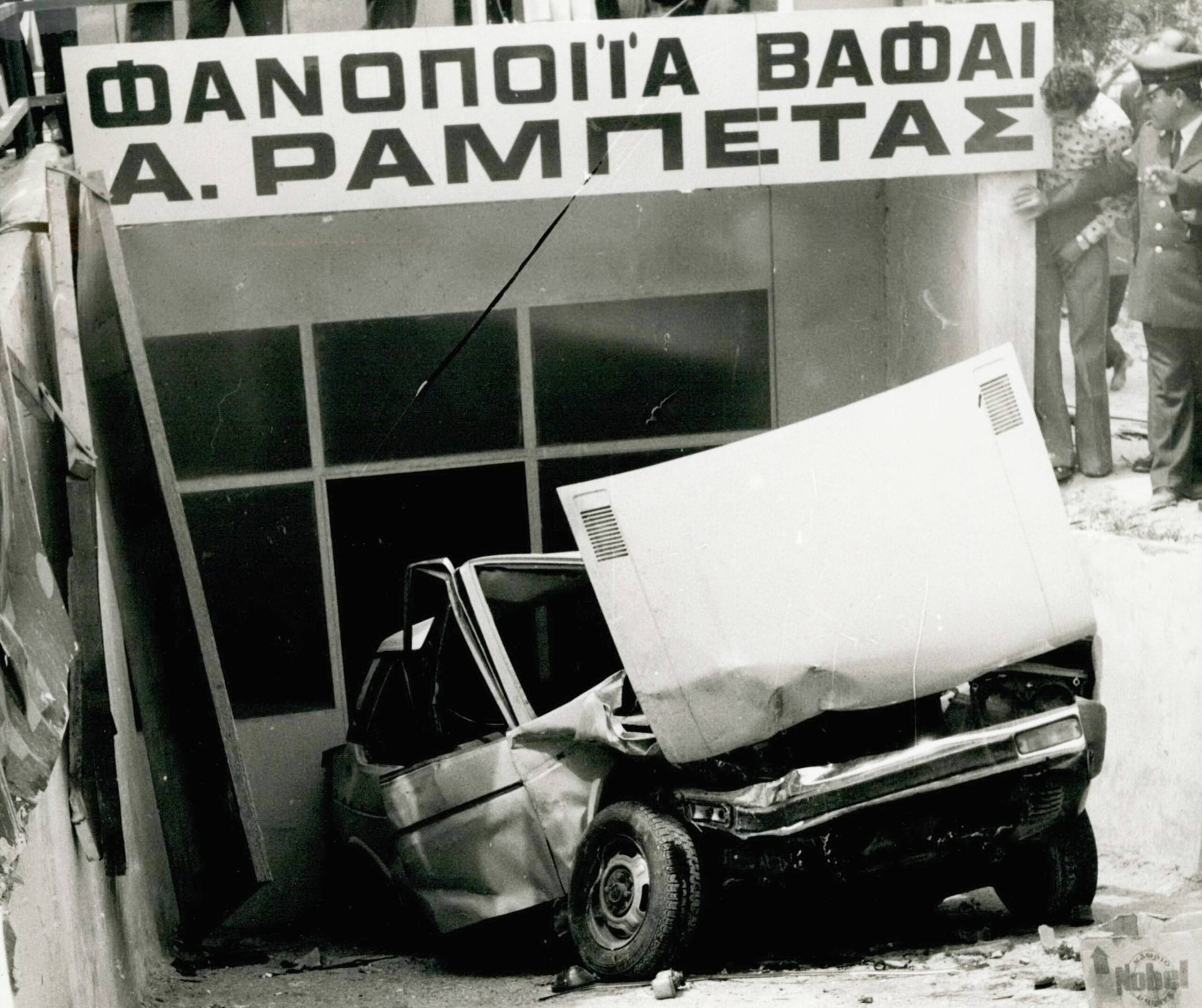Το μοιραίο Fiat Mirafiori, το οποίο οδηγούσε ο Αλέκος Παναγούλης, λίγο μετά το δυστύχημα (1/5/1976). Keystone Press Agency/ZUMA/VISUALHELLAS.GR