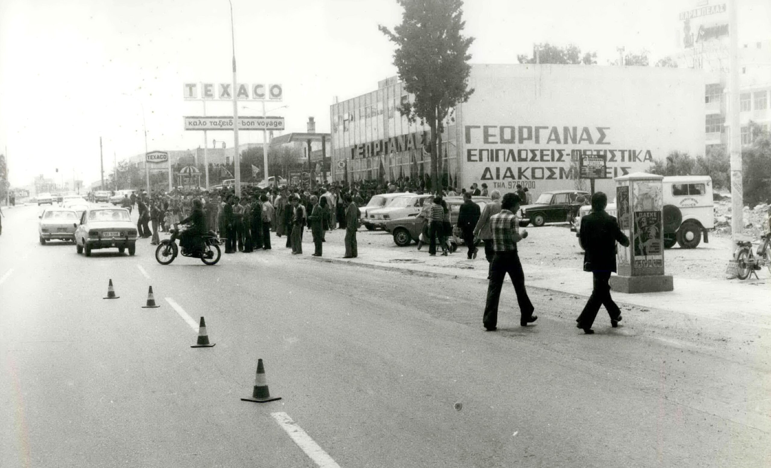 Συγκεντρωμένο πλήθος στο σημείο της λεωφόρου Βουλιαγμένης, όπου λίγες ώρες νωρίτερα συνέβη το δυστύχημα στο οποίο σκοτώθηκε ο Αλέκος Παναγούλης. KEYSTONE/ZUMA/ALAMY/VISUALHELLAS.GR