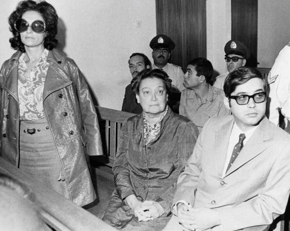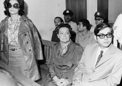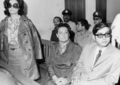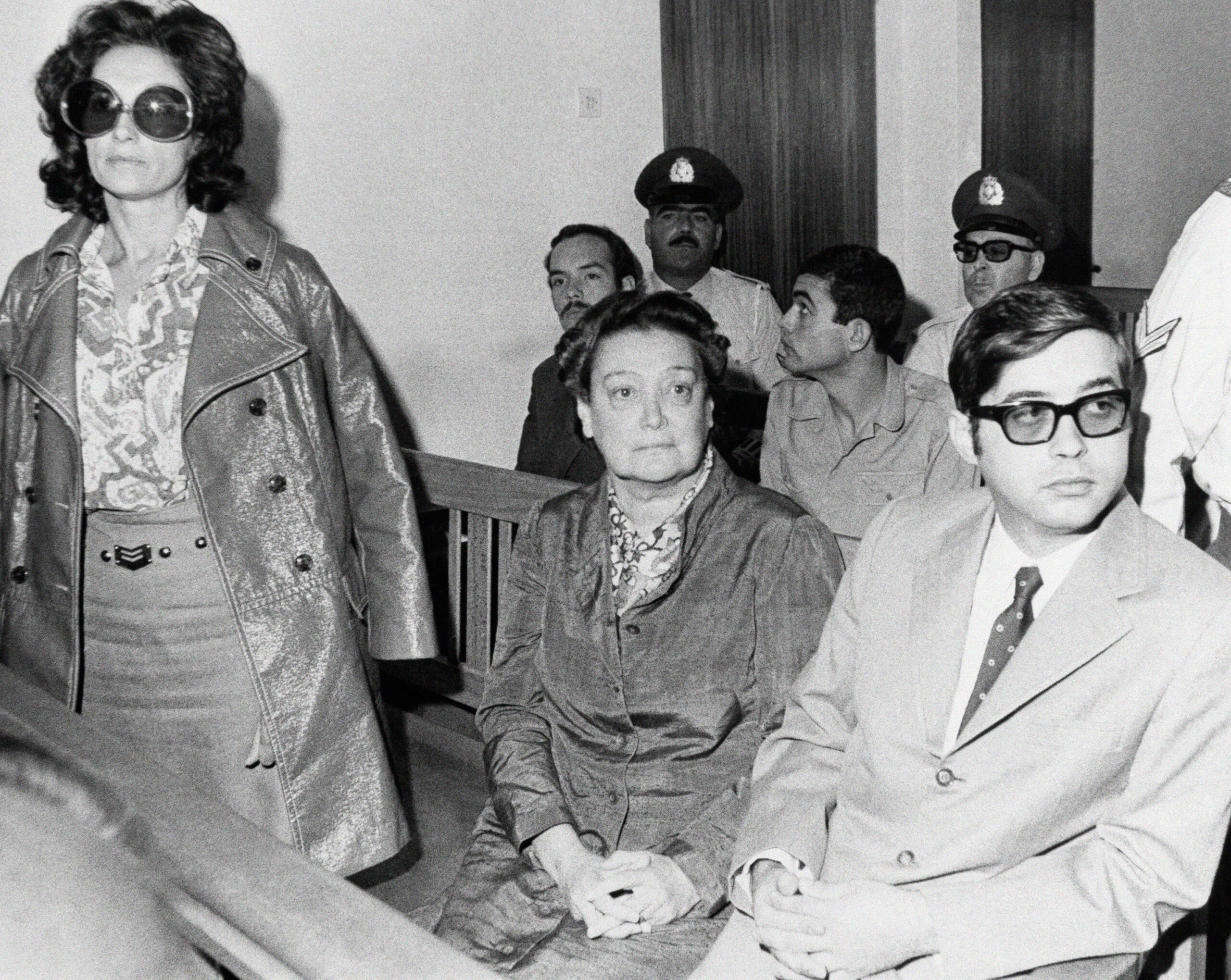 H Αθηνά Ψυχογιού, η Αμαλία Φλέμονγκ, ο Τζον Σκέλτον και ο Κώστας Ανδρουτσόπουλος στην δίκη, που έγινε στις 29 Σεπτεμβρίου σε Έκτακτο Στρατοδικείο για την συμμετοχή τους στη δεύτερη απόπειρα απόδρασης του Αλέκου Παναγούλη, από το Κέντρο Εκπαιδεύσεως της ΕΣΑ, στο Γουδί.
