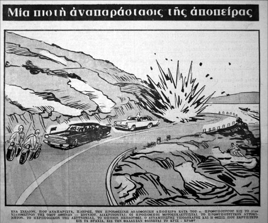 Αναπαράσταση της απόπειρας δολοφονίας του Παπαδόπουλου στον τύπο της εποχής