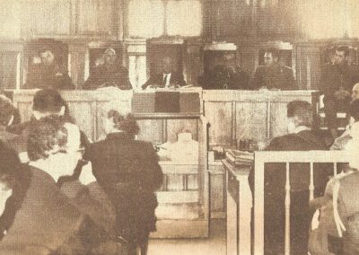 ‘Εναρξη της δίκης του Αλέξανδρου Παναγούλη και των δεκατεσσάρων συγκατηγορουμενών του στο Στρατοδικείο της Αθήνας. Φωτ. Denis Langlois, Panagoulis, le sang de la Grece.