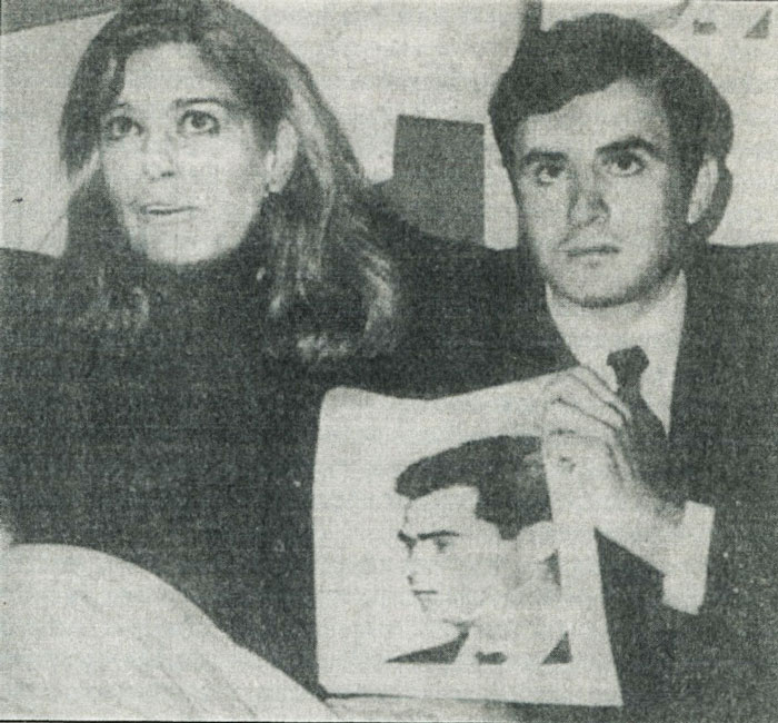 Η Μελίνα Μερκούρη και ο Στάθης Παναγούλης, σε εκδήλωση διαμαρτυρίας έξω από την ελληνική πρεσβεία στο Λονδίνο.